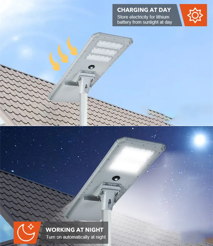IP66 High Output All-in-one Integrated Solar LED Street Lamp with 12.8V LiFePO4 Battery