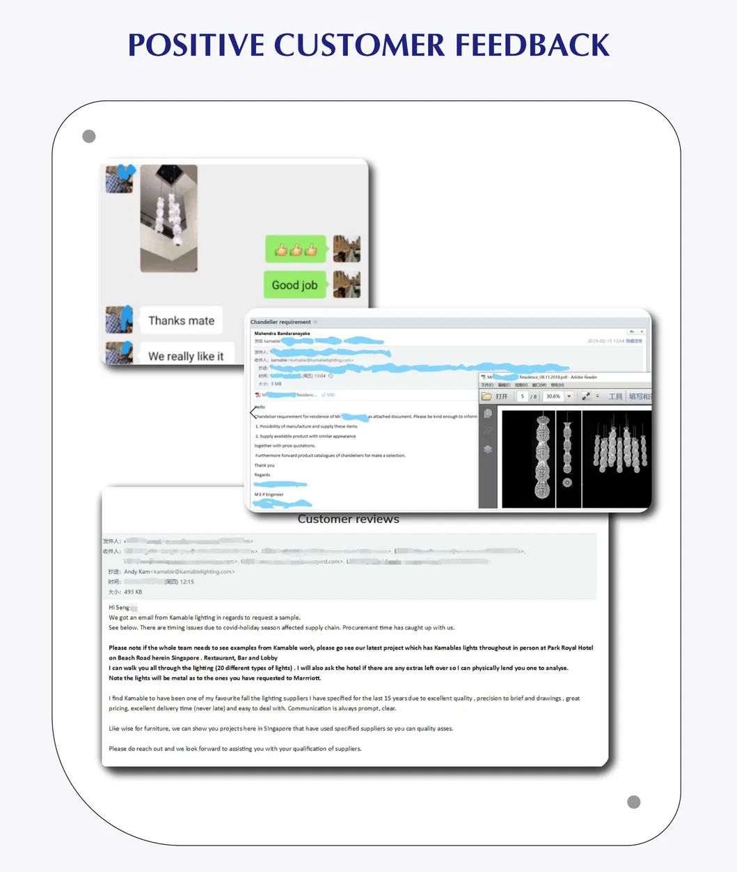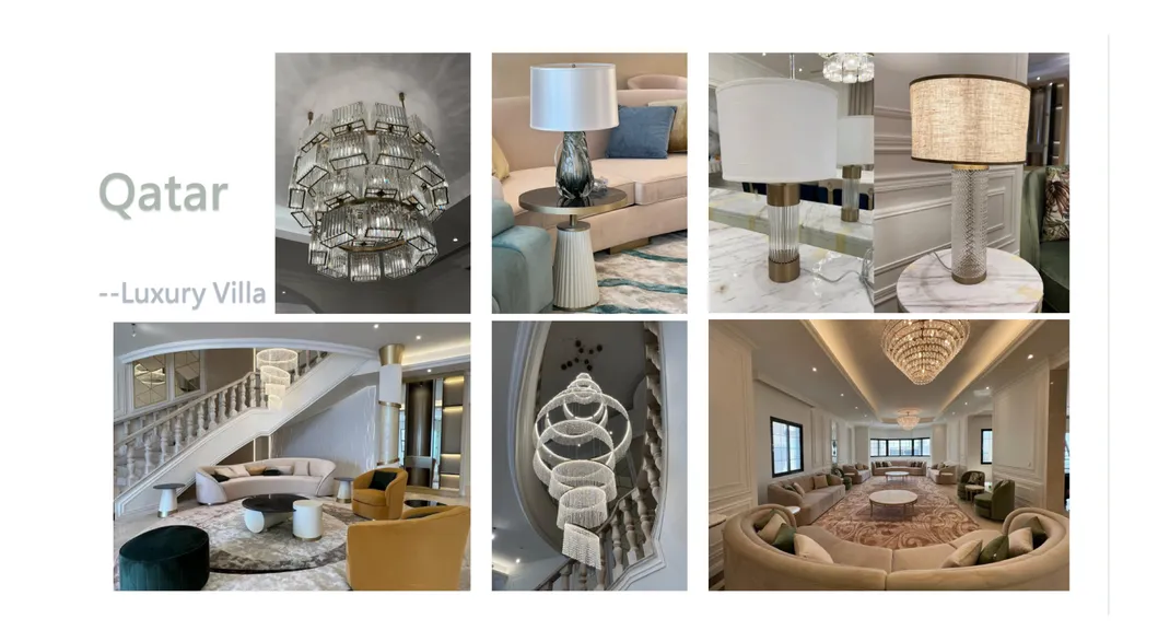 Our R&D department is highly creative, and our QC staff members have over 10 years of experience. All lighting fixtures comply with international standards, and electrical parts are certified with CE, UL, and SAA. We specialize in high-quality modern home lamps, hotel project customized chandeliers, villas lights, and commercial lighting fixtures.